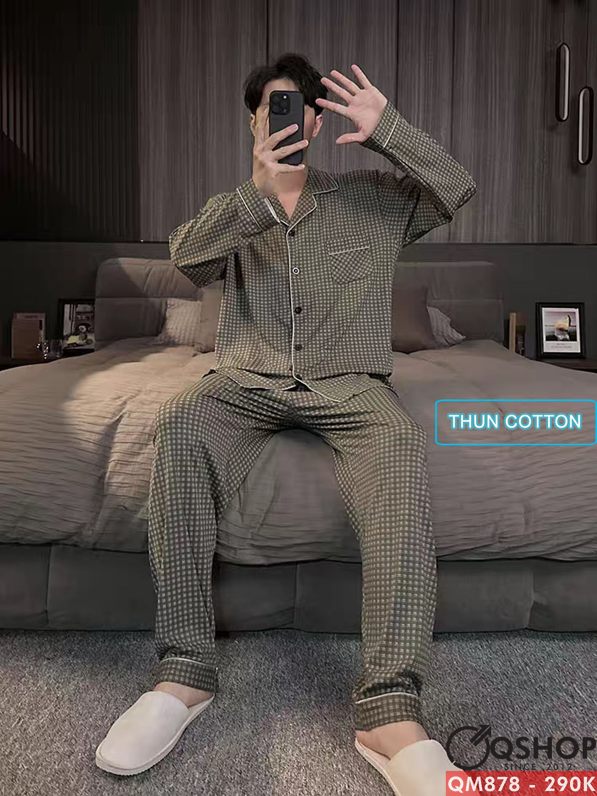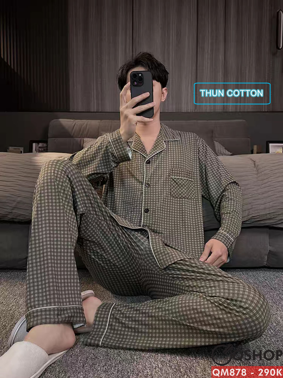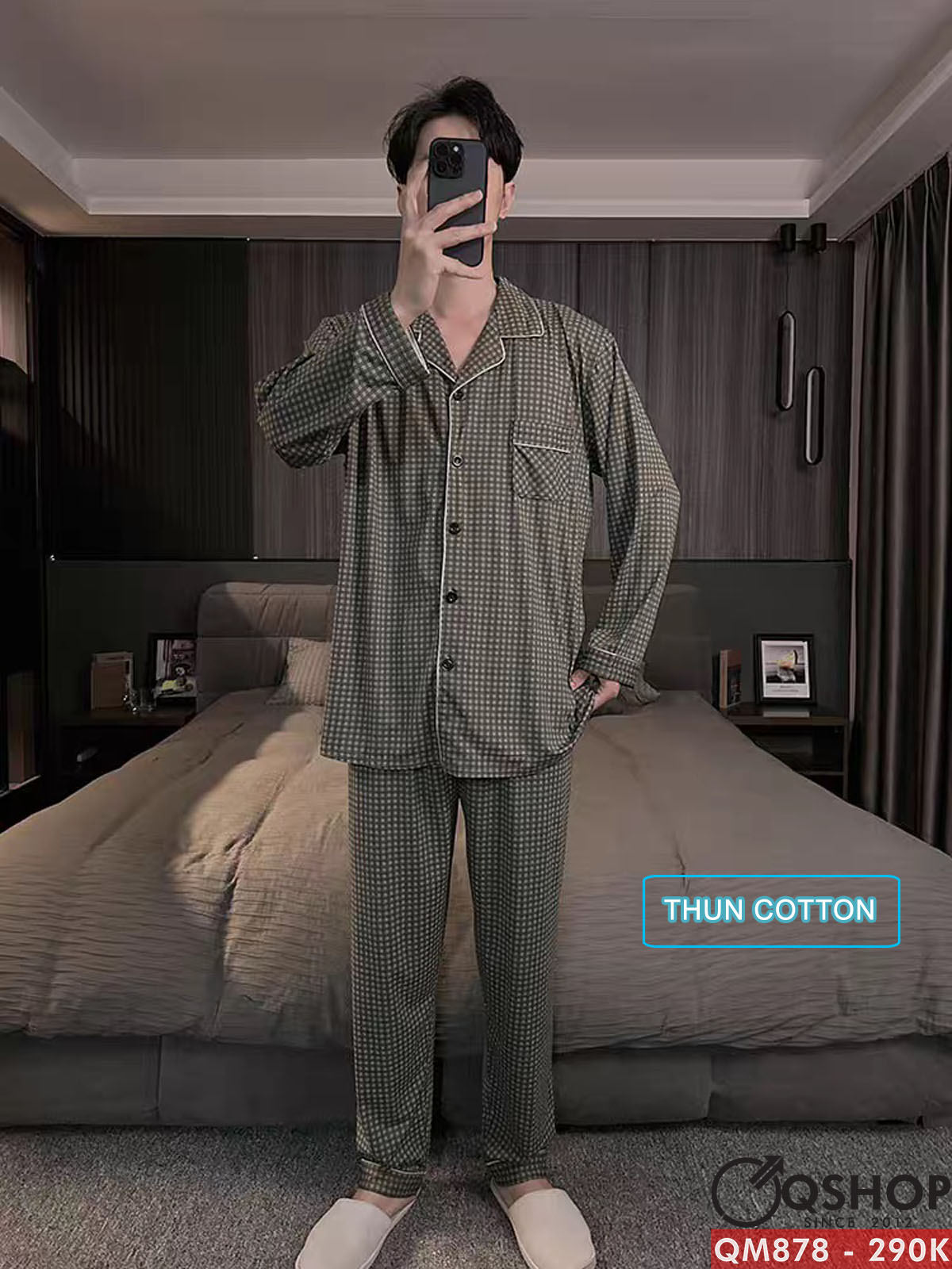 Bộ đồ pijama nam thun cotton quần dài tay dài thoải mái QM878
