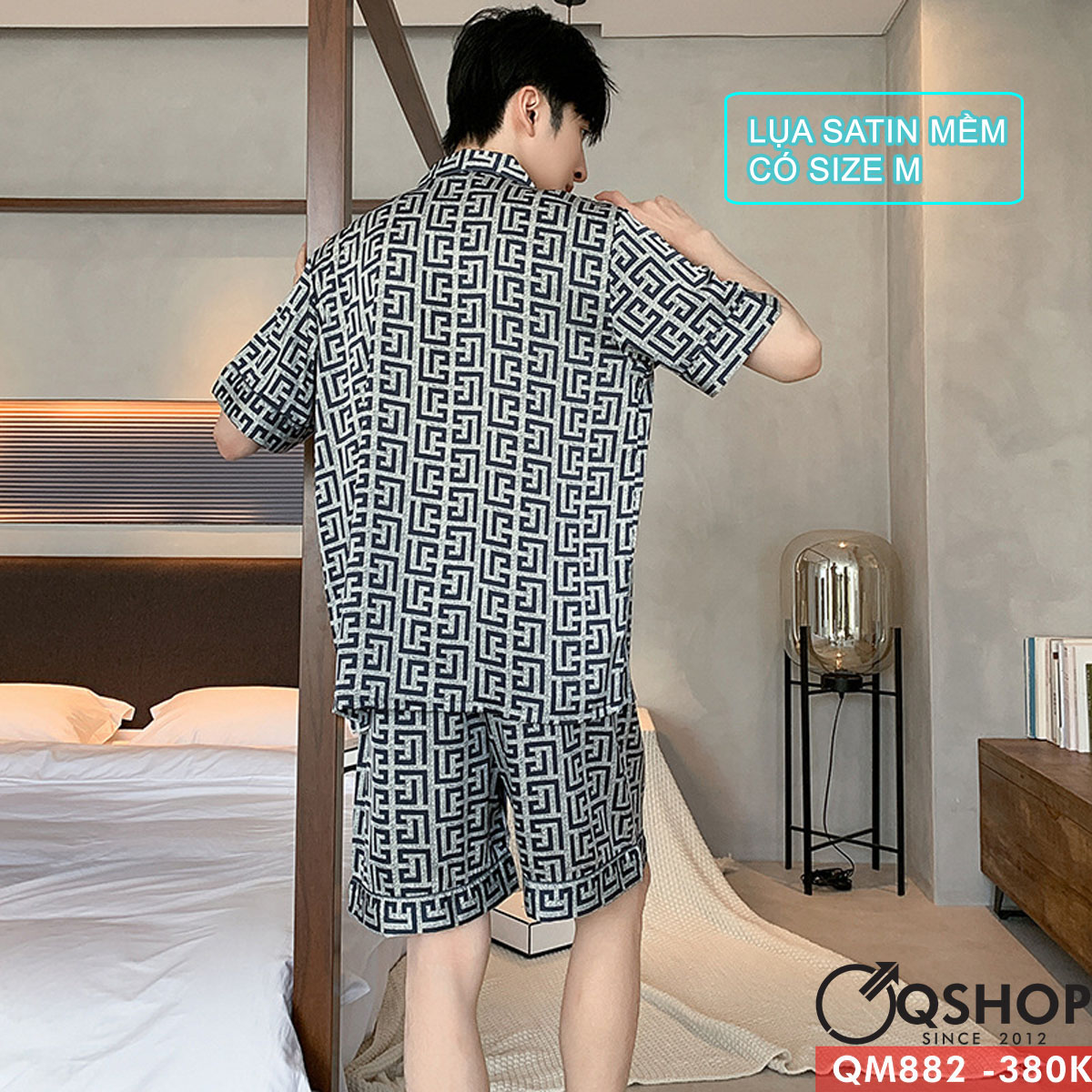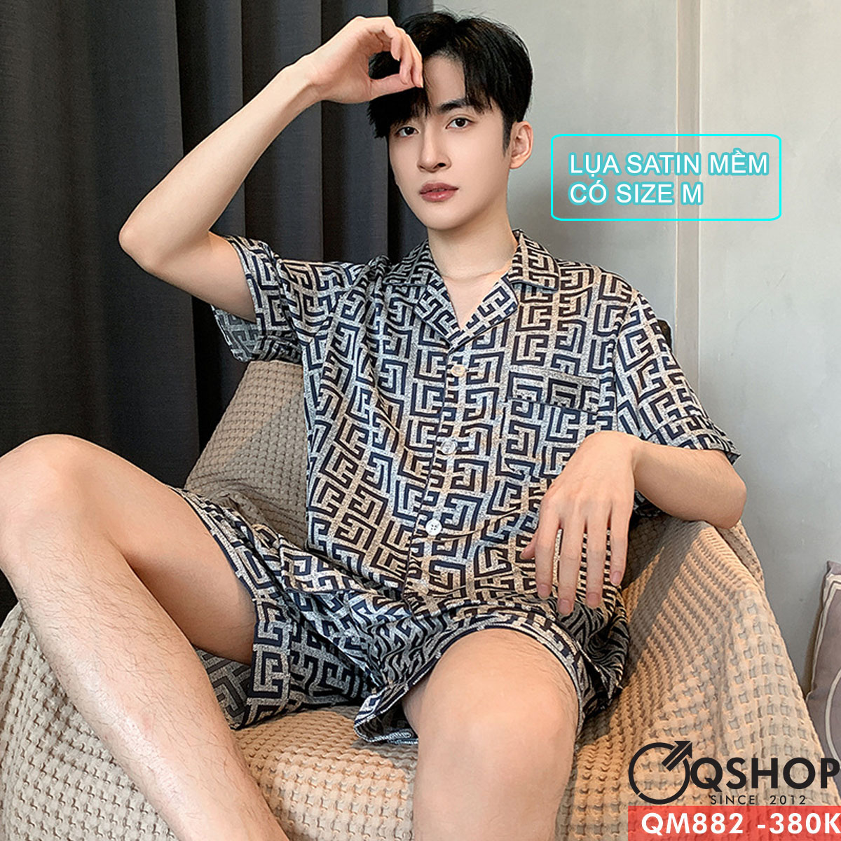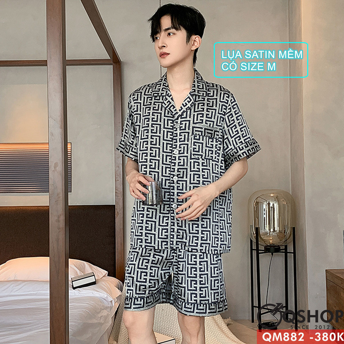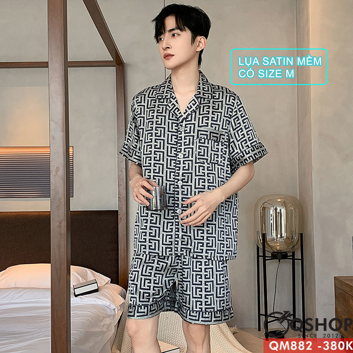 Bộ đồ pijama nam quần ngắn tay ngắn lụa satin mềm thoải mái thoáng mát QM882