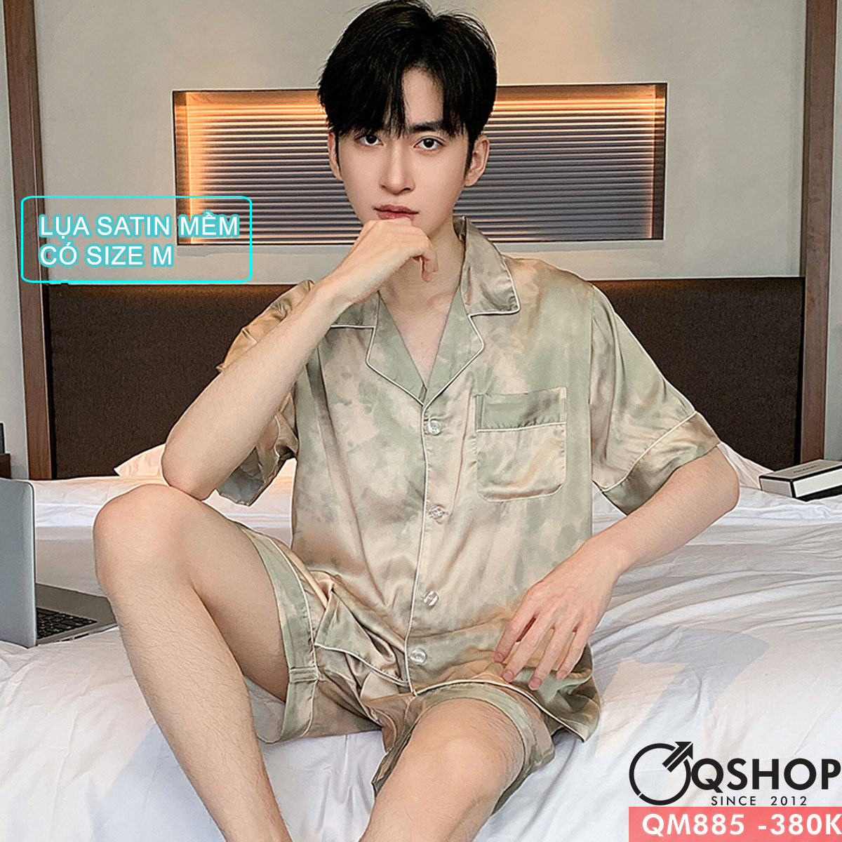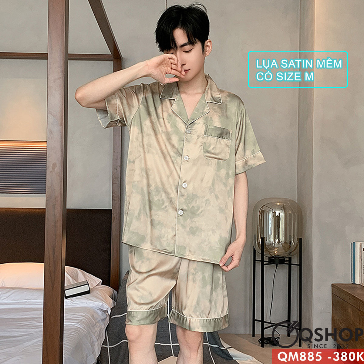 Bộ đồ pijama nam quần ngắn tay ngắn lụa satin mềm mịn mặc nhà mặc ngủ thoải mái QM885