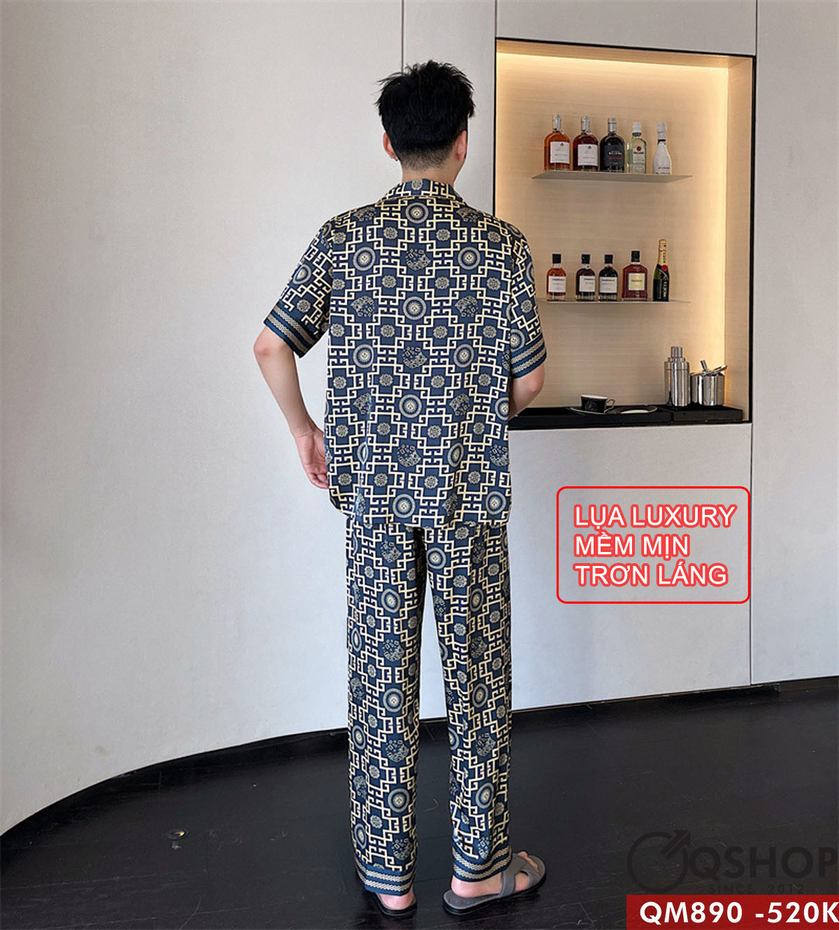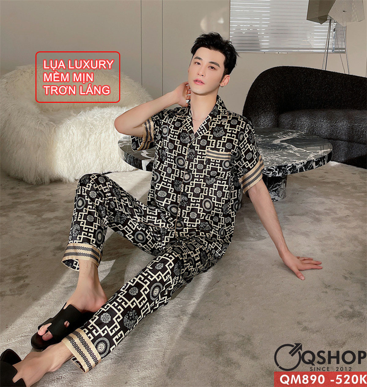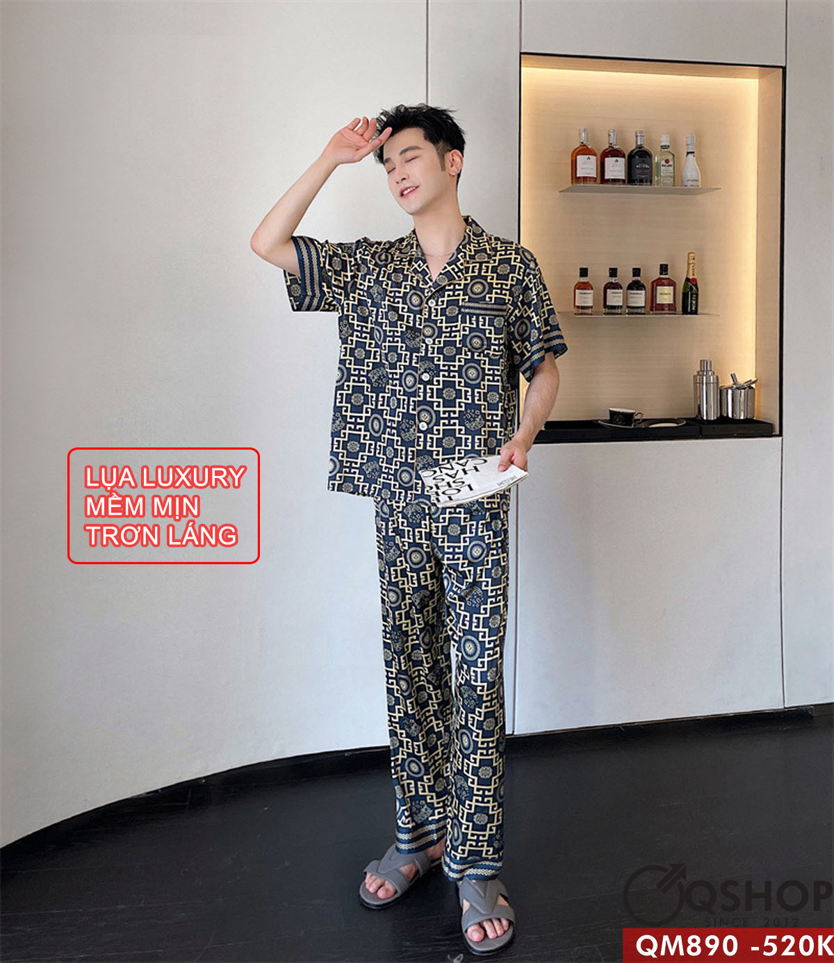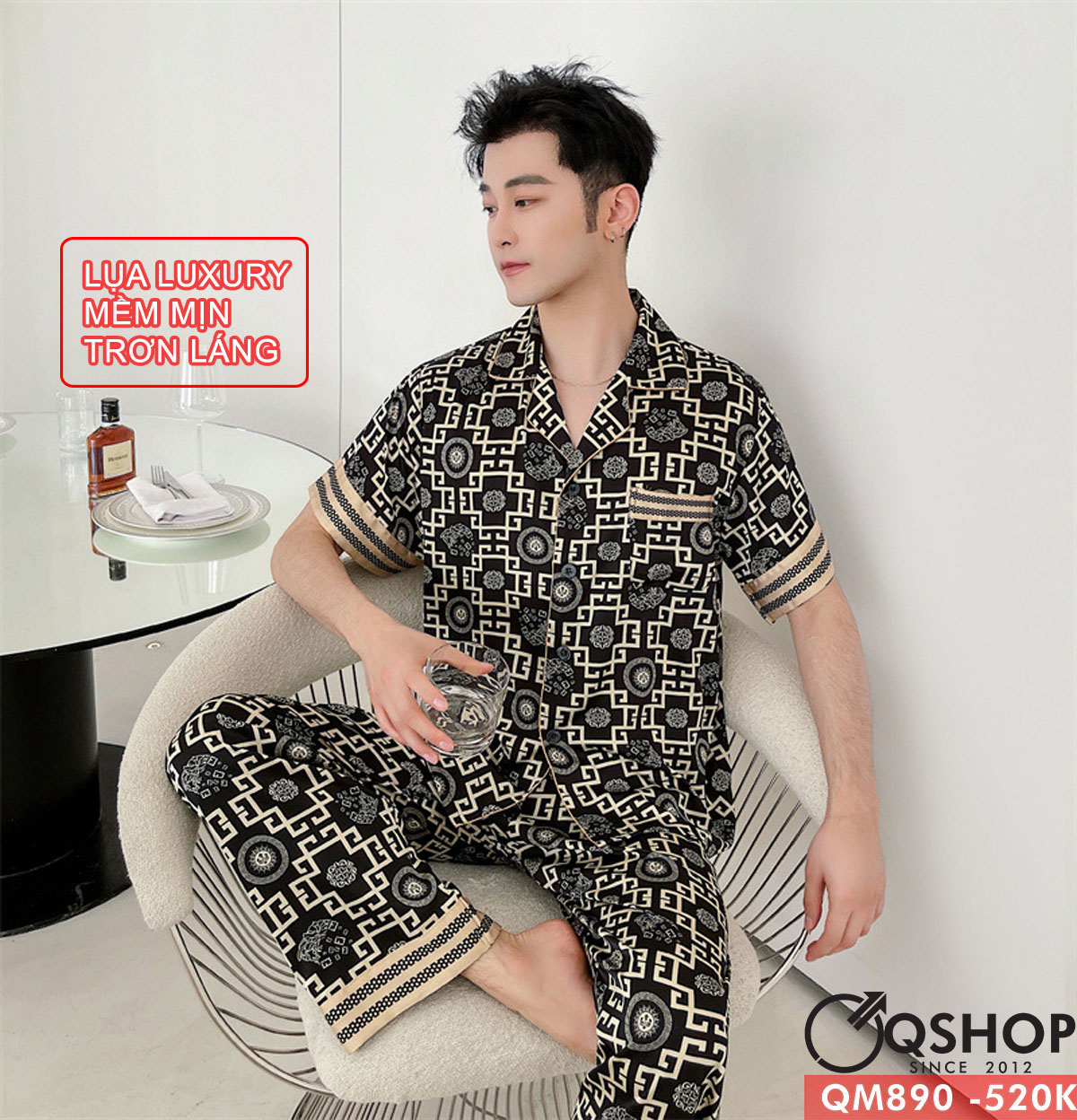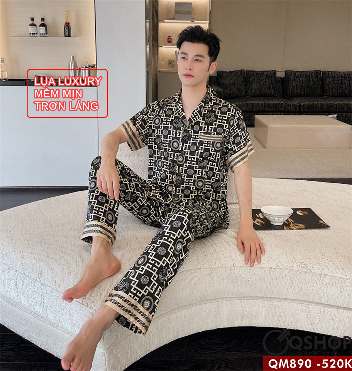 Bộ pijama nam tay ngắn quần dài lụa Luxury cao cấp mặc ngủ thoải mái QM890