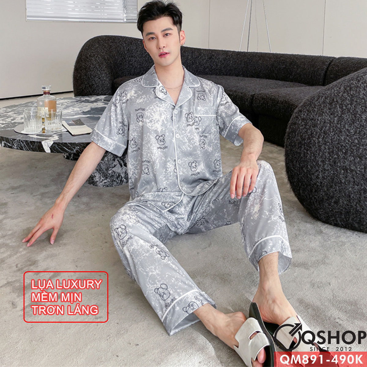 Bộ pijama nam tay ngắn quần dài lụa Luxury cao cấp mặc ngủ thoải mái QM891