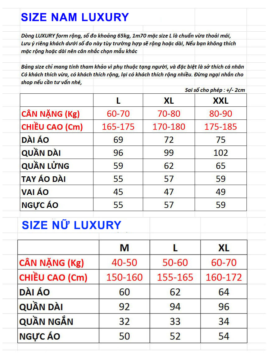 Size khuyến nghị chỉ mang tính tương đối để tham khảo vì còn phụ thuộc chiều cao, tạng người, sở thích cá nhân mặc ôm, vừa hay rộng. Nhắn tin cho shop nếu cần tư vấn size nhé.