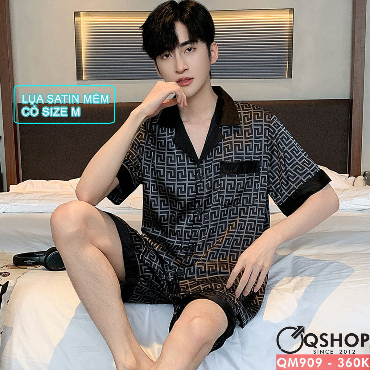 Bộ đồ ngủ pijama nam lụa satin quần ngắn mặc nhà mặc ngủ thoải mái QM909