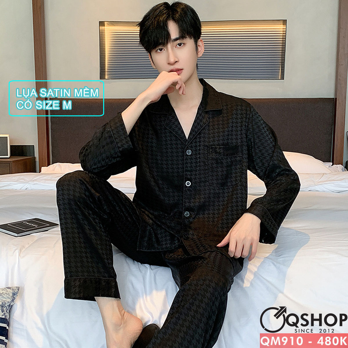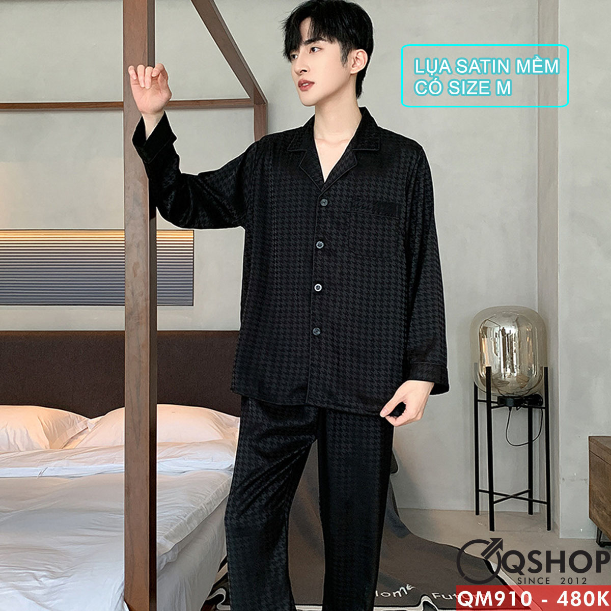 Bộ đồ pijama nam lụa satin mềm quần dài tay dài mềm mặc thoải mái QM910