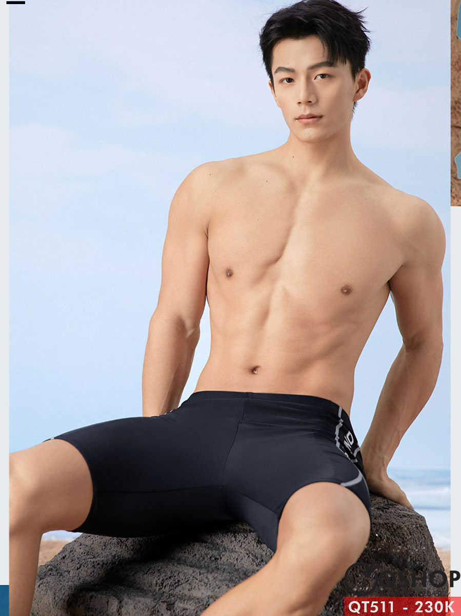 Quần bơi nam lửng màu đen đơn giản QT511